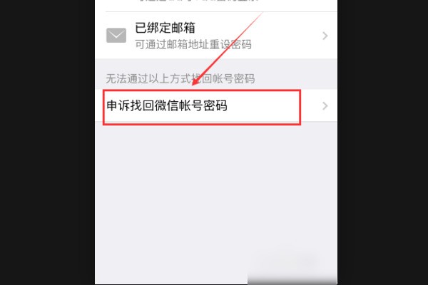 5、进入到【找回帐号密码】页面后,然后点击【申诉找回微信帐号密码】按键。