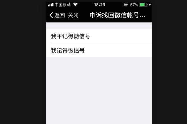 7、进入到申诉页面后,如果我们记得微信号则点击【我记得微信号】按键,如果不记得微信号就点击【我不记得微信号】按键。之后再根据相关提示进行操作即可在24小时内获得申诉的结果了。