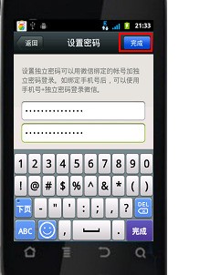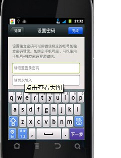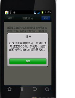在“设置密码”窗口中输入独立的密码,并点击“确定”按钮,如果两次密码一致的话,独立密码就设置成功啦。然后再用独立的密码登陆微信即可。