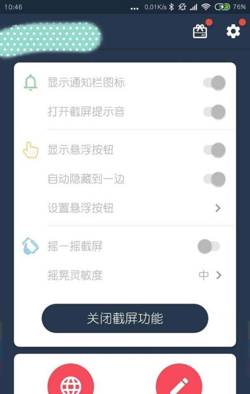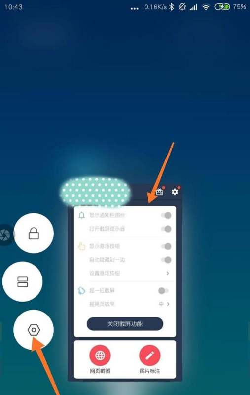 开启截屏悬浮窗在快速截屏页面中,若显示截屏悬浮窗关闭,则点击对应开关按钮,将其切换为开启状态。