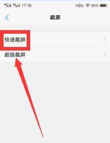 进入快速截屏设置在截屏功能页面中,点击快速截屏选项,进入具体设置界面。