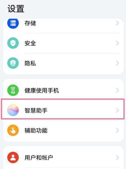 步骤1:进入智慧助手设置打开华为手机设置界面,在顶部搜索栏输入“智慧助手”或直接滑动找到智慧助手选项并点击进入。