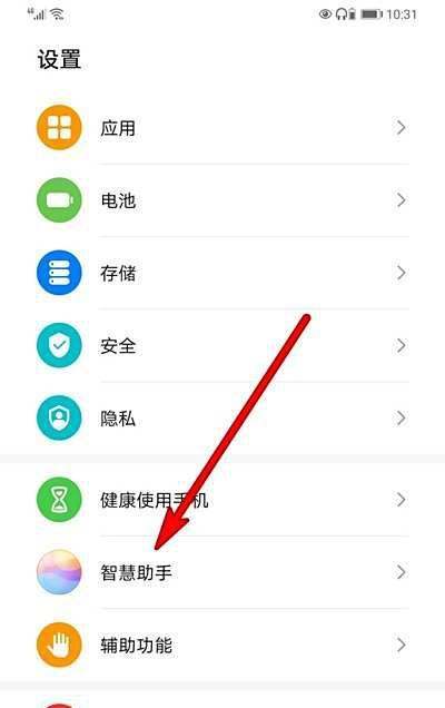 打开设置页面,点击智慧助手选项:在华为手机主界面找到“设置”图标并点击进入,在设置页面中查找并点击“智慧助手”选项。