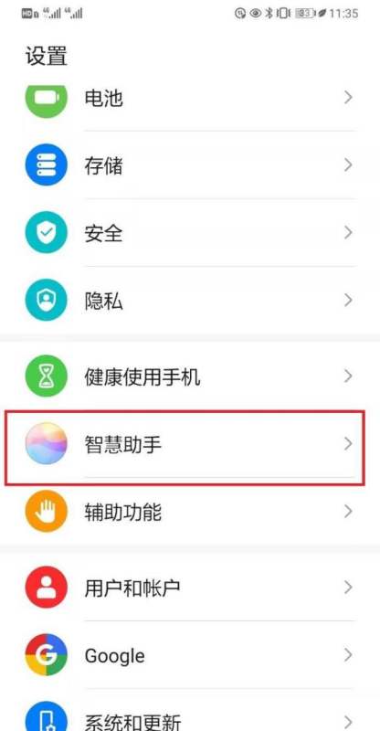 进入【智慧助手】选项:在设置页面中,滑动屏幕找到【智慧助手】并点击,进入智慧助手功能页面。
