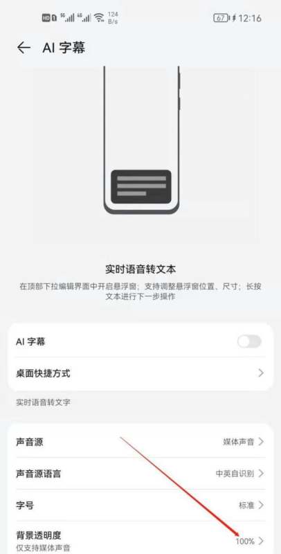 华为手机设置AI字幕背景透明度需在系统设置中通过智慧助手相关功能完成,具体步骤如下: