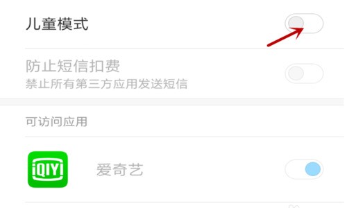 4.将儿童模式后面的启动键打开,如图所示。