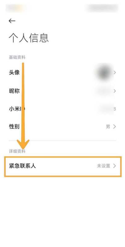在个人信息页面中,选择【紧急联系人】选项,进入紧急联系人设置界面。