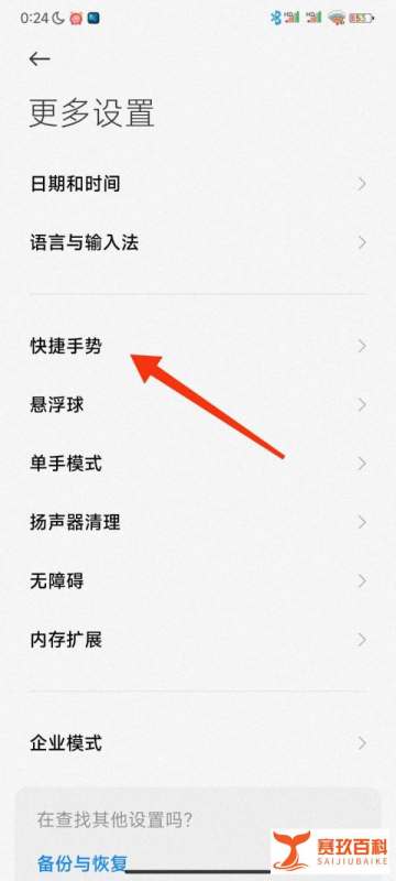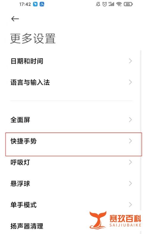 定位快捷手势选项在设置页面中,依次选择更多设置→快捷手势,进入手势功能配置界面。