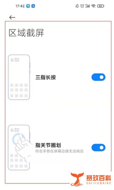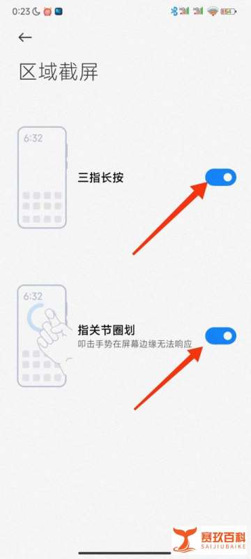 指关节圈划:用单指关节在屏幕上画圈,直接圈定需要截取的区域。(建议根据个人习惯选择,同时开启可提升操作灵活性。)