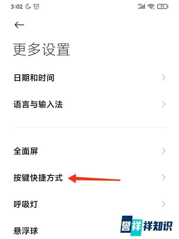 第二、进入按键快捷方式页面在“更多设置”页面中,找到并点击“按键快捷方式”选项,进入快捷操作配置界面。
