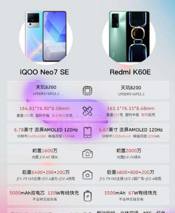 新款天玑8200芯片手机怎么选?iQOO Neo7 SE和Redmi K60E对比分析