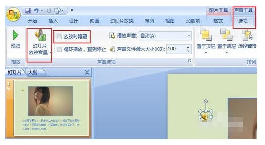 4?? 隐藏它!鼠标点一下小喇叭 → 顶部自动跳出声音工具栏 → 勾上放映时隐藏?