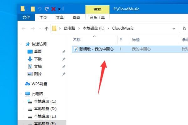 8、此时页面跳转以后打开了该音乐所在的文件夹,可以看到其保存的路径,选中该音乐,将其拖移到桌面上。