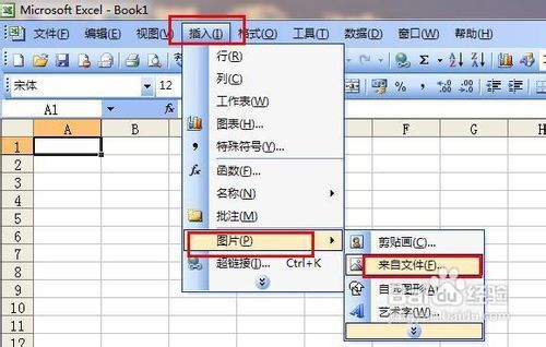 2、我们打开一个excel表格,在菜单栏上一次点击 插入——图片——来自文件