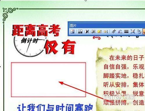 步骤/方法 1、首先去百度图片搜索一张高考倒计时的图片,下载下来。这一步就不做介绍了。