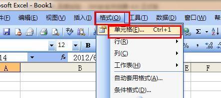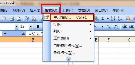 8、还是选中A14的单元格,在菜单栏上点击 格式——单元格。
