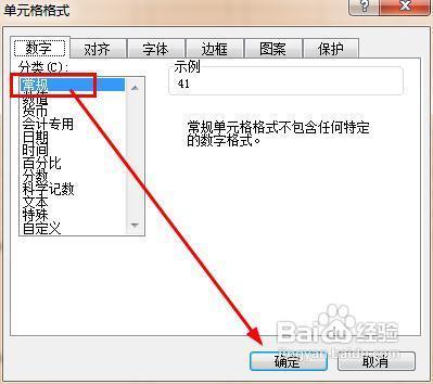 12、设置格式为 常规,然后点击确定。