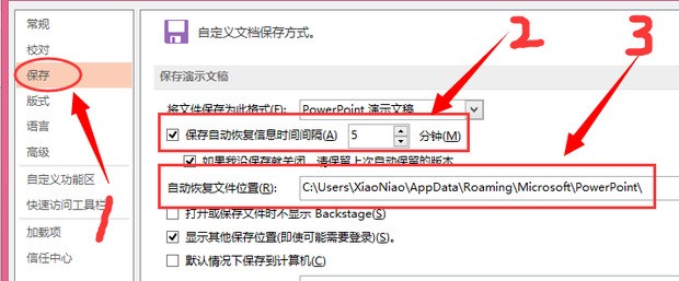 培4、在弹出的选项菜单中,点击“保存”选项。如下图中的标识“3”,就自动恢复文件的位置。