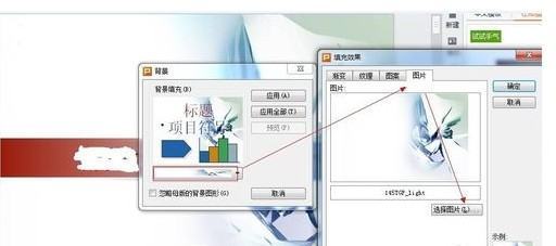 4、还有一种情况下,文字是不能修改的。文字是在背景图片中的。这样的话,我们就要通过图像编辑软件来擦除原来的文字,写上需要的文字。然后替换背景春清图片。背景图片替换方法:右键背景,在弹出来的对话框中选择"填充效果",在图片选项卡中,添加刚才此前修改的图片即可。