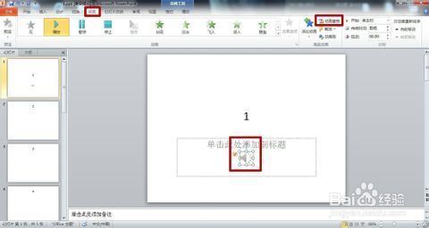 4.下面我们就要将这个音频设置为从第1张到第3张幻灯片自动播放。先单击选中该音频,然后在“功能区”选择“动画”选项卡,在“动画”选项卡里,单击“动画窗格”。