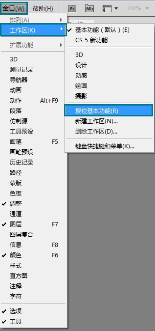 直接点工作空间右边那个带横杠的小三角→点显示菜单栏,搞定!
