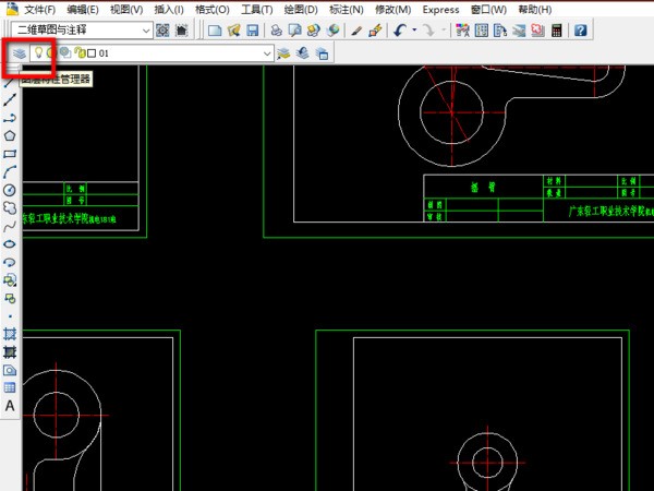 3、若选择隐藏“测量”后,图中的槐数肢标注尺寸未隐藏,那么还可以通过打开关闭相应的图层来设置标注尺寸的显示隐藏。图层管理。