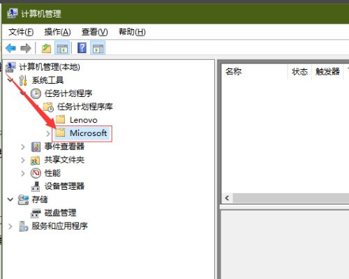 4、之后在“计算机管理”中依次展开“系统工具”-->“任务计划程序”-->“任务计划程序库”-->“Microsoft“。