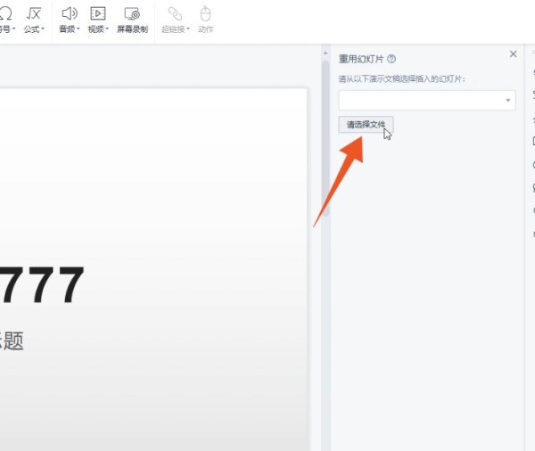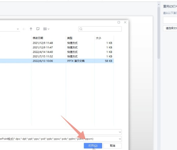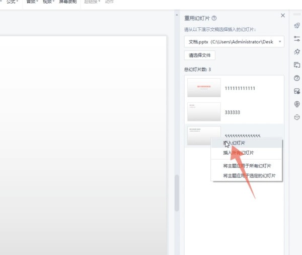 5、点击打开点击打开按钮,用你的鼠标右键单击重用幻灯片里面插入进去的幻灯片。