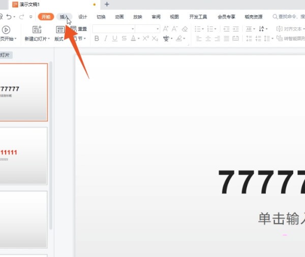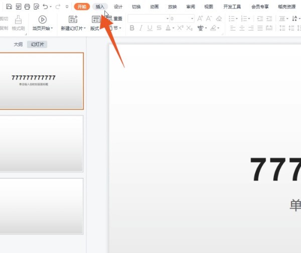 1、点击插入选项卡进入到PPT的程序界面,在上方的各个功能选项卡里面点击插入选项卡。
