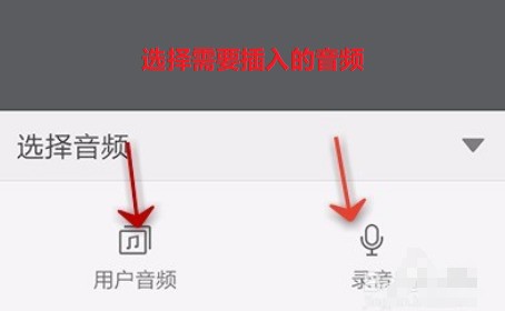 6.接着在底部弹出的音频插入选择中选择需要插入的音频类型,根据自己的需要选择好需要插入的音频文件。