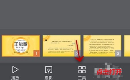 3.打开PPT文件后,在页面的底部点击【工具】这个选项展开软件的功能选项。