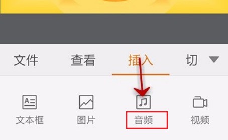 5.然后在插入的页面中,选择插入【音频】的文件插入类型。