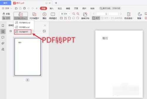 2、出现选项,点击“PDF转ppt”。