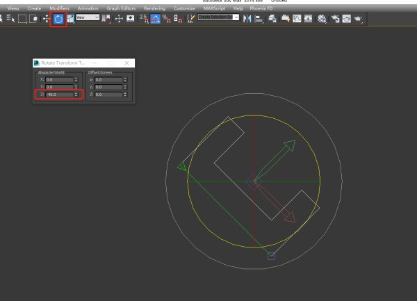 4、开始旋转吧,在旋转工具这里单机鼠标右键,弹出角度输入窗口,因为我们要沿着Z轴旋转,所以就把刚刚测量到的角度值输入Z轴这里,逆时针为正,顺时针为负。