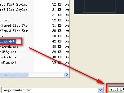4、然后点击新建,打开新建对话框,选中刚刚保存的模板,点击打开,如下图。
