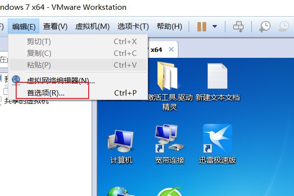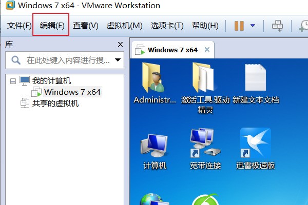 1.单击虚拟机界面左上角的编辑,如下图所示。