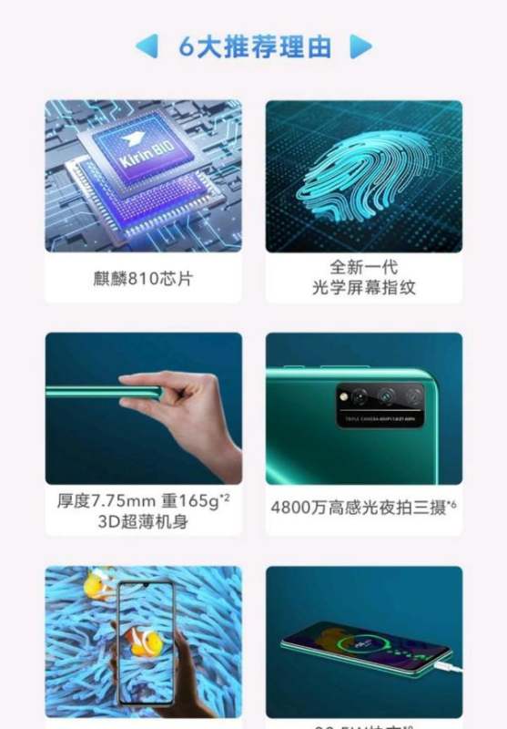 核心配置:麒麟810处理器,6.3英寸OLED屏,4000mAh电池,22.5W快充。