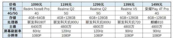 总结推荐1100元以内:以Redmi系列为主,侧重续航和基础性能,推荐Redmi Note8 Pro(综合最强)和Redmi 9(性价比之选)。1100元-1500元:以Realme系列为主,侧重5G和高刷体验,推荐Realme Q2(首选)和Realme V5(进阶选择)。参数速览500元-1000元机型参数: