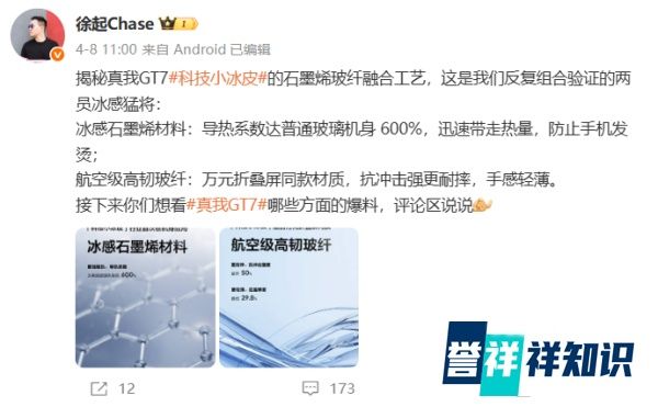 realme副总裁徐起曾在微博“剧透”过,这种材料可以迅速带走热量,防止手机发烫,对于游戏党来说是一大福音。