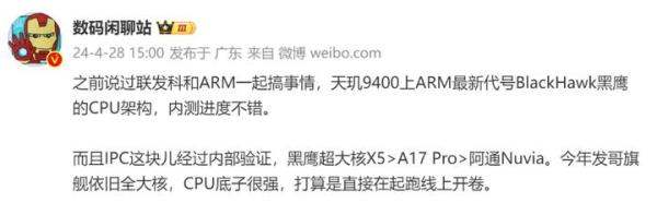 联发科天玑9400通过搭载ARM“BlackHawk黑鹰”架构的Cortex-X5超大核、台积电N3工艺及全大核设计,在性能、功耗和AI领域实现突破,有望成为新一代旗舰标杆。以下为具体分析: