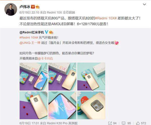 卢伟冰确认小米不用天玑800