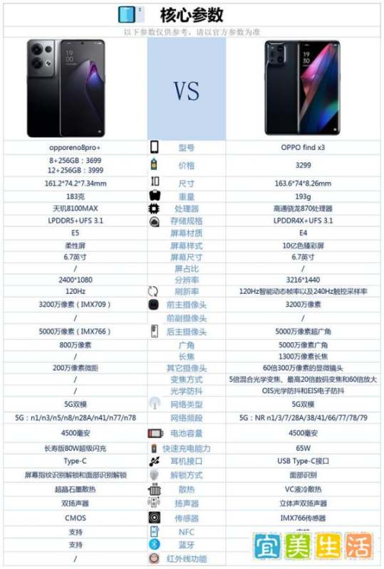 若追求轻薄机身、高刷新率屏幕及快速充电,且预算充足,OPPO Reno8 Pro+是更合适的选择;若更看重性能稳定性、专业级拍照体验及防水功能,OPPO Find X3则更具优势。以下是对两款手机的详细对比分析: