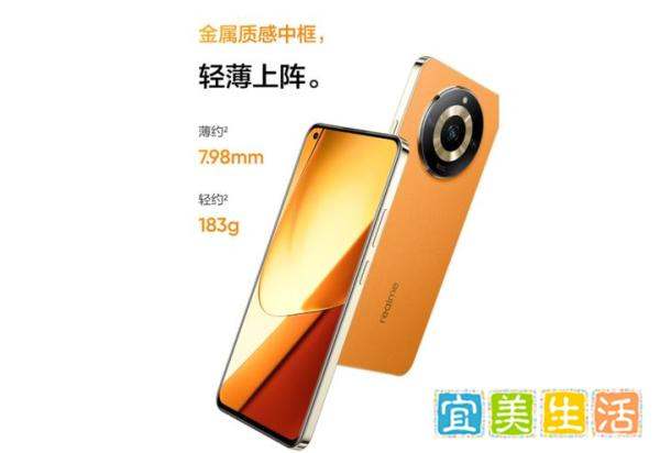 设计方面:真我11采用金属质感中框设计,搭配7.98mm超薄机身和183g轻巧重量,美观大方,握感舒适,便于携带,满足用户对手机外观和便携性的双重需求。