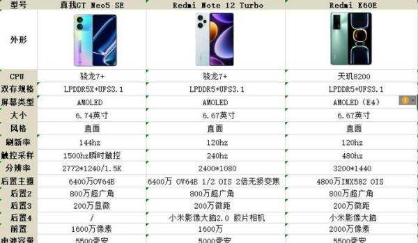 在2000元左右的手机市场中,真我GT Neo5 se、红米note12turbo和红米k60e都是高性价比的机型。选择哪一款主要取决于你的个人需求和偏好。以下是针对这三款手机的详细对比分析:
