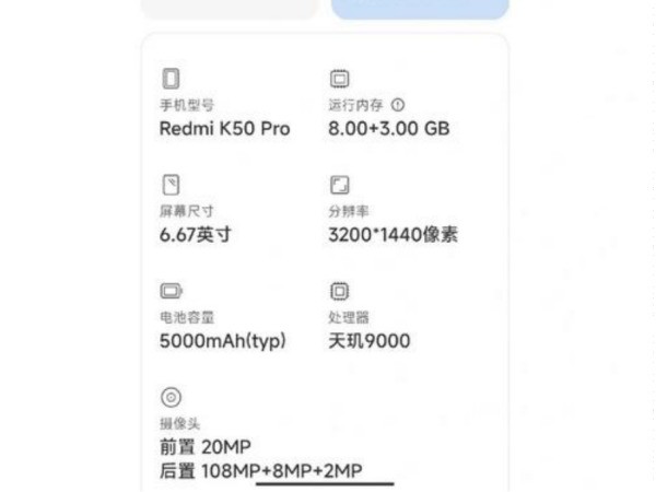 红米k50pro参数和配置包括屏幕基本参数配置、设计和材质基本参数配置、CPU基本参数配置、内存基本参数配置、存储空间基本参数配置等。