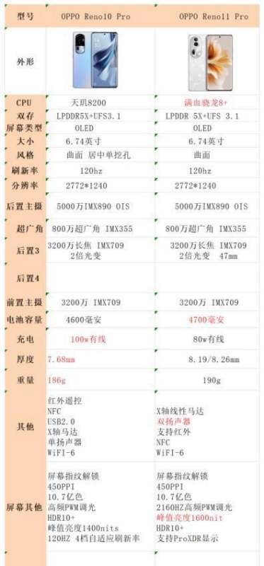 如果更看重拍照且考虑性价比,建议选择降价后的OPPO Reno10 Pro;如果追求更强的性能和游戏体验,则OPPO Reno11 Pro更为合适。以下是两款手机的详细对比: