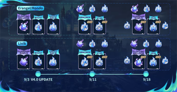 4.0 版本引入了极具创意的“幽灵”玩法,让淘汰不再意味着出局,而是另一种乐趣的开始。这套玩法由两种幽灵角色构成:“小幽灵”(Ghosty)和“恶作剧幽灵”(Prankster Ghosts)。