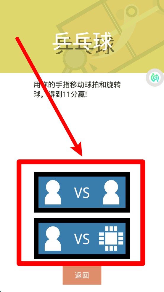 2.对战选择:进入兵乓球模式后玩家可选择好友对战或电脑模式,灵活的匹配机制带来紧张刺激体验,增加挑战乐趣。