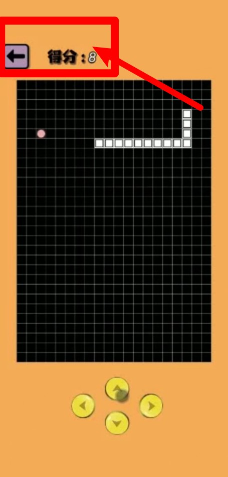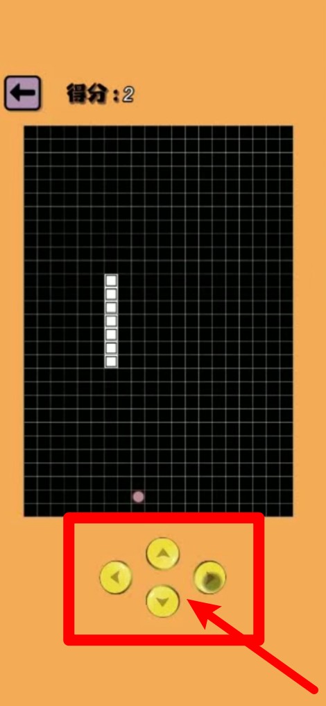 2.操作按键:下方的四个方向按钮用于控制蛇的移动,分别代表上下左右,精准操作是吃到苹果并顺利过关的关键所在。