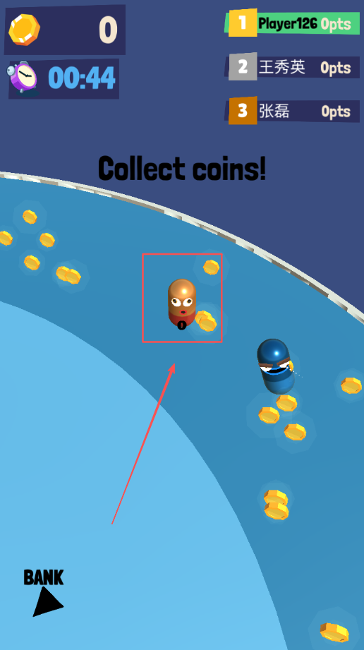 1、通过虚拟摇杆控制胶囊移动方向,在场景中寻找金币和对手目标,提高资源获取效率和成功率,优化操作技巧。